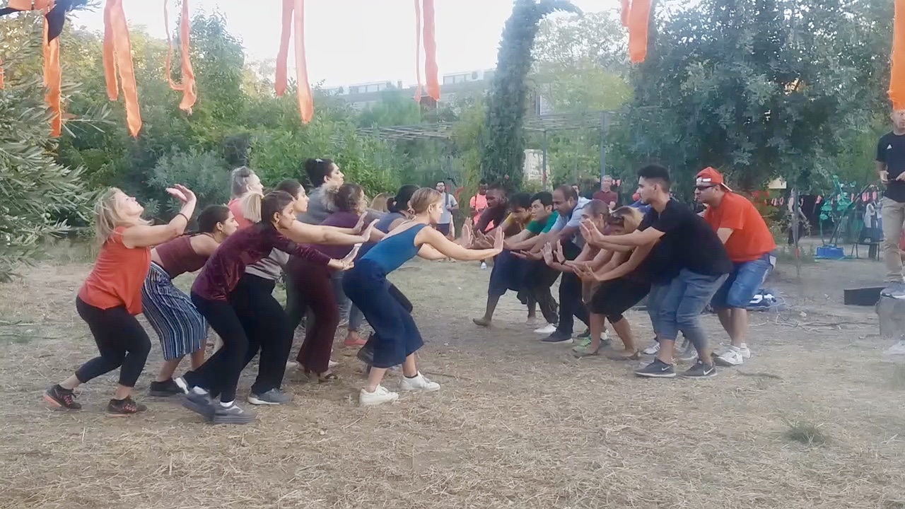 On Saturday, September 28, we performed at The Yellow Days Festival at the School of Fine Arts in Athens with a cast of 12 displaced from Iran, Afghanistan, Cameroon, 4 Greek dancers and our collaborating team, Maria, Bianca and myself. Our total performers this year was 21!